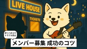 この記事は、2時間リハの流れ・演奏バランスの落とし穴・録音活用法・メンバー間の悩み対策まで、バン活!編集長の実体験をもとに詳しく解説しています。