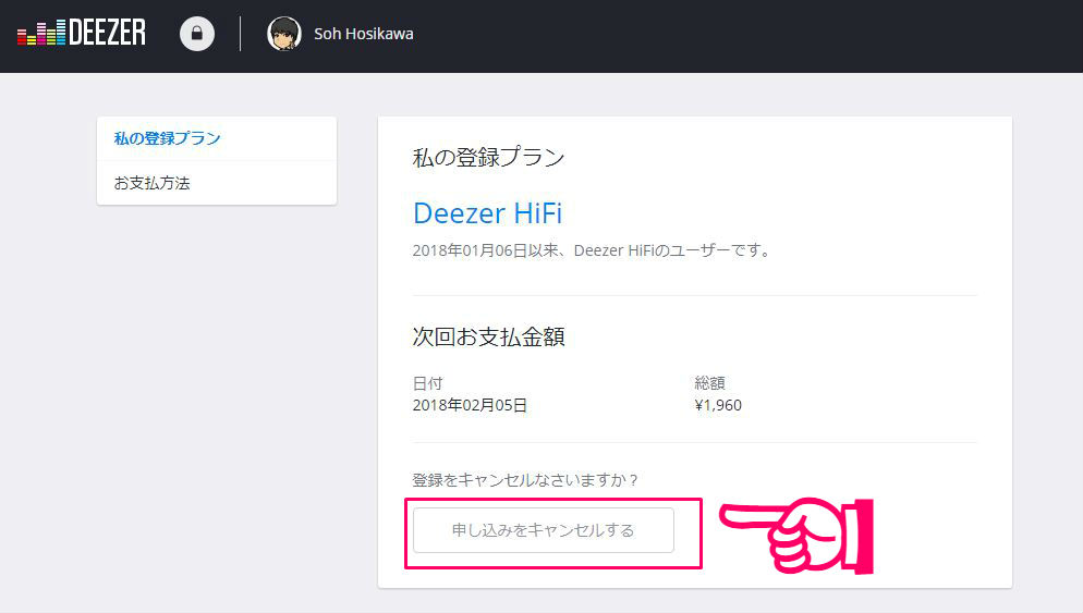 そして「申し込みをキャンセルする」をクリックすればOK!