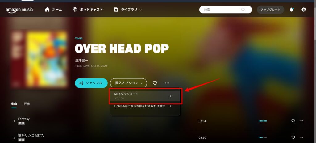 購入すると、すぐAmazon Musicアプリのライブラリに反映されます。