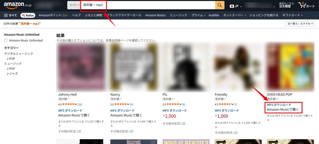 - 商品を検索(「アーティスト名 mp3」で検索すると便利)