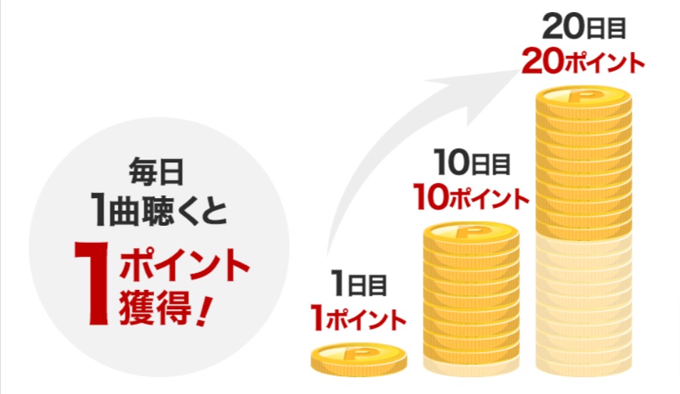 1日1曲聞くと、1ポイントがもらえます!