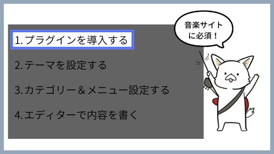 ここではまず、サイトを立ち上げた時に最低限導入しておきたいプラグインと音楽サイトなら導入しておきたいプラグインを紹介します。