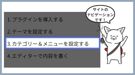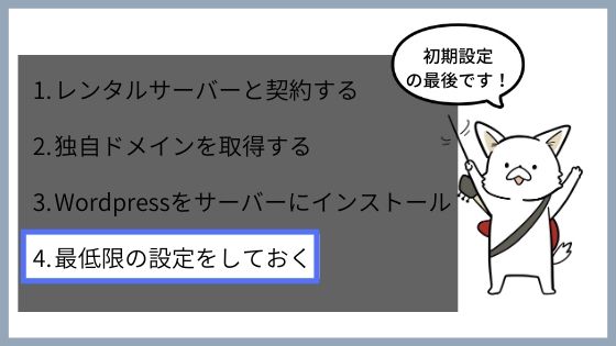 次に実際にページを作り出す前に必要な最低限の設定をサイトに施していきましょう。