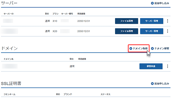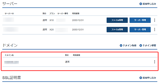 エックスサーバーではサーバー契約すると、スタンダードプランでも最大2つまで無料でドメインが取得可能。