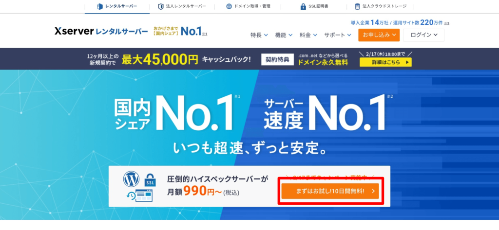 それでは以下からエックスサーバーに申し込む手順を確認してきましょう。