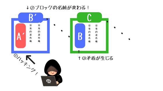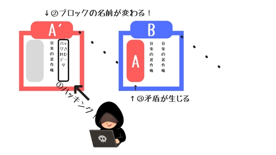 なので、例えば悪い奴が中のブロックを破って中のデータを書き換えたとします。
