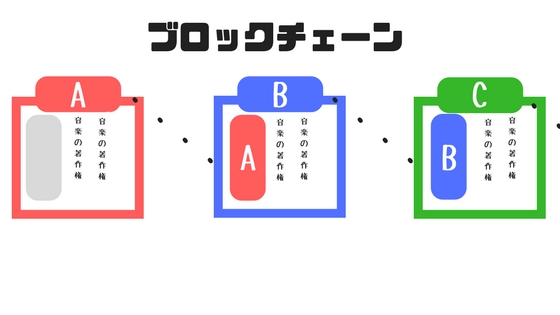 ブロックの中に(例えば)音楽の著作権の情報を保存します。