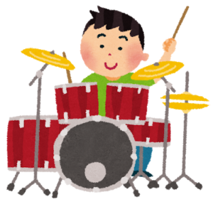 ドラムはまずはキックから、スネア⇒ハイハイット⇒ハイタム⇒ロータム⇒全体、と順に音を出すことを指示されることが多いです。